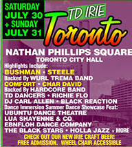 Caribbean. Irie Music Festival, Nathan Phillips Square, July 30-31. 1pm-11pm. Free. http://iriemusicfestival.com/.